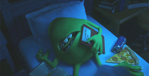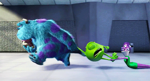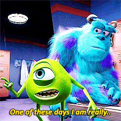Who doesn't love the adorable characters in the Disney Pixar movies, Monsters, Inc. and Monsters University? Sulley, the big, fuzzy, blue monster that has purple polka-dots, paired with his tiny, green, one-eyed, sidekick named Mike, are a dynamic duo. Together, these monsters have graduated Scare School in order to work to generate power throughout their city by scaring children and then harvesting screams. Throughout the two movies, Sulley and Mike have accurately depicted the thoughts and feelings of college students during a typical day. Here are 20 Monsters, Inc. gifs that describe college.