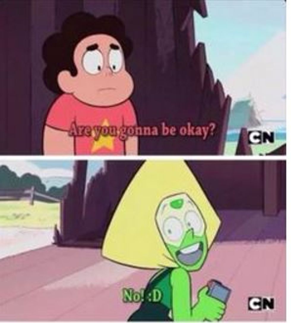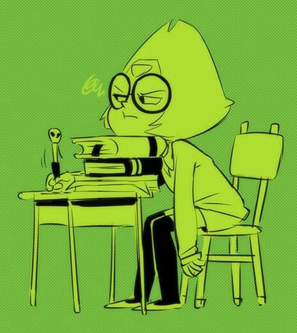 Steven Universe fans have fallen in love with this weird green lady. Full of relatable angst, sweet ignorance, and funny faces, she is the perfect alien to show us what the crazy college life is all about.