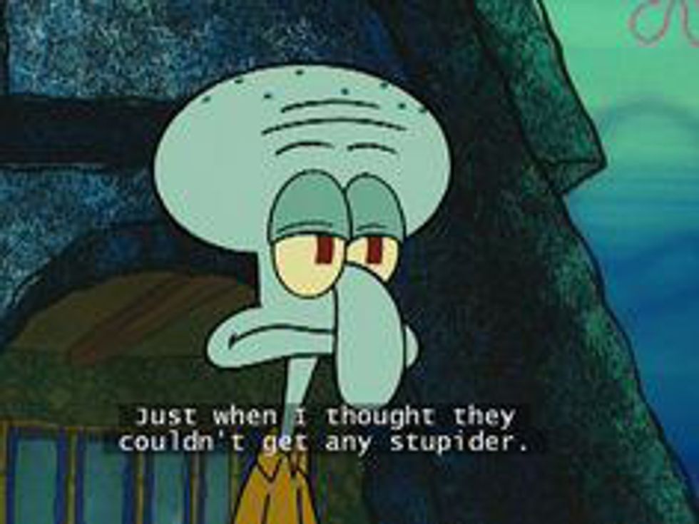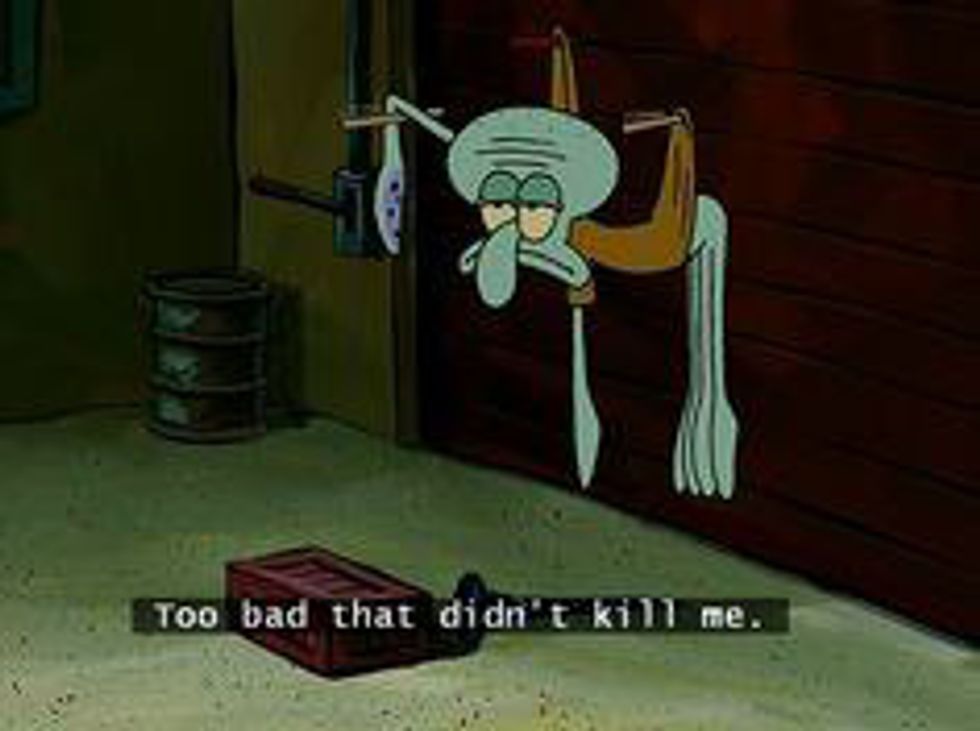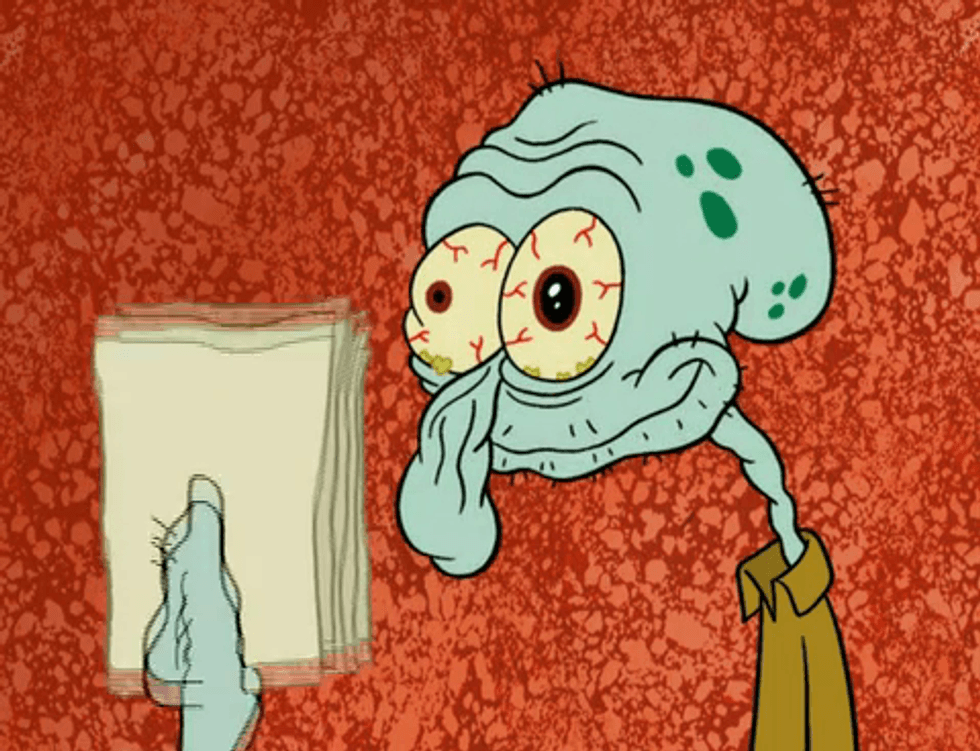 Who lives in a pineapple under the sea? Spongebob Squarepants! But what about the dreary neighbor whom we didn't understand as children? Suddenly as college student, his narcissistic viewpoints, rude comments, and boring interests seem strikingly familiar. His reactions are priceless. His comments are blunt. He knows exactly what every college student is already thinking. So here's to all the times that Squidward Tentacles got college just right.