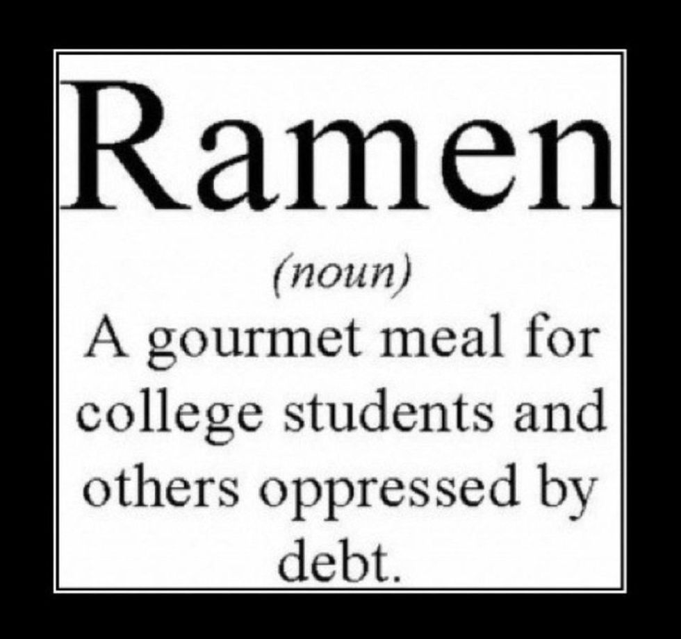 We as a whole are in a whole lot of debt together. This is the big first step to becoming an adult. So with that being said we are all living off the Ramen noodles together. And I know that there are a few exceptions to this rule with kids that have parents that work at the Universities and go for free… this is not an excuse for you to drive around your very obviously expensive Mercedes around campus with all of your high end clothes! No. You pretend to be broke with the rest of us. But I’m not gonna lie if I was in your shoes I would break this rule, but I’m not so you can’t.