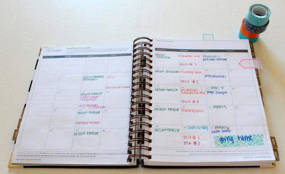 College is a hectic, overwhelming, and incredibly busy time of your life. You may think that your mind is young and sharp, and you would never forget a due date, but it happens to everyone. Keeping a day planner will help you to never forget your work, and it will relieve some of the stress you face in your daily life. And who doesn't need that?