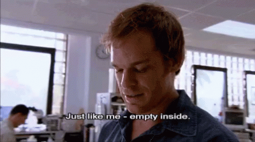 Ah, the sweet relief of the end of finals week. However, finals take everything away from me, and I feel nothing inside - just like Dexter, 99% of the time.