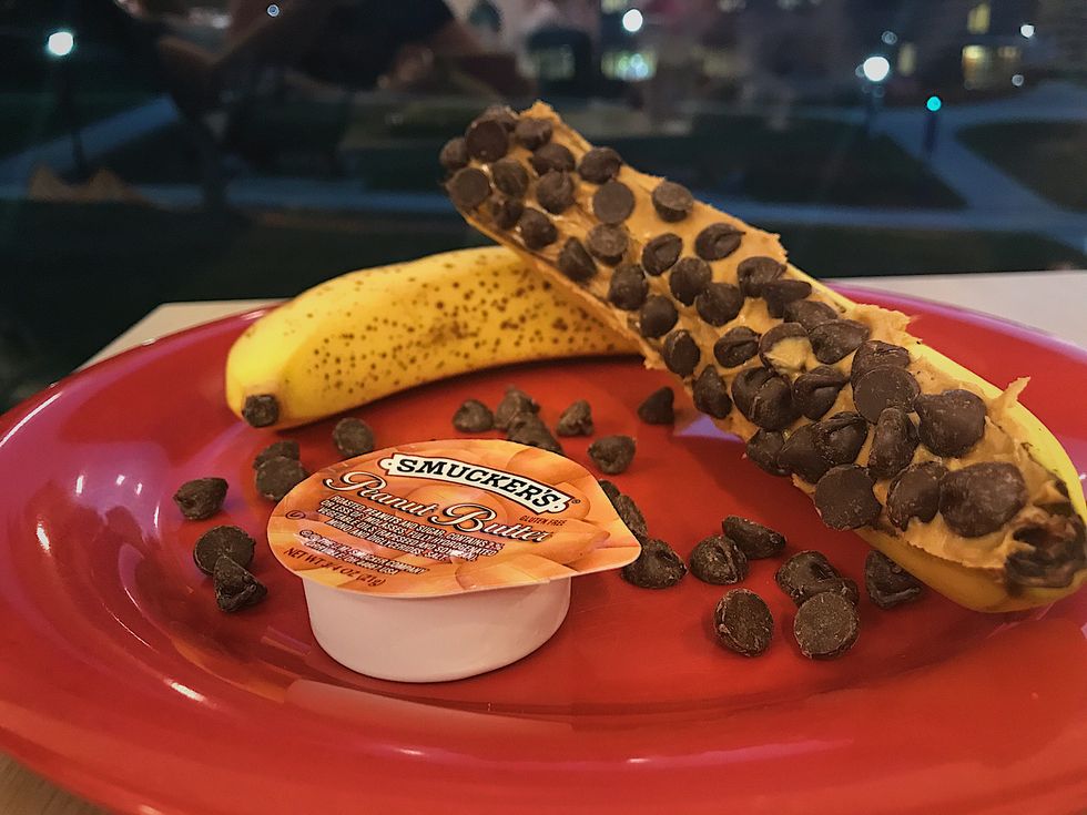 One of my all time favorite snacks/desserts at my dining hall is a banana boat! It's a healthier option for when you're craving something sweet! It can be done in the dining hall or in your dorm room. Grab yourself a banana and peel back one part, then get some peanut butter, usually located at the toast station and smear to your heart's content. Then, dress up your banana boat with milk chocolate or white chocolate chips. Enjoy the snack with a friend or late at night while writing that essay; it will give you a protein boost.