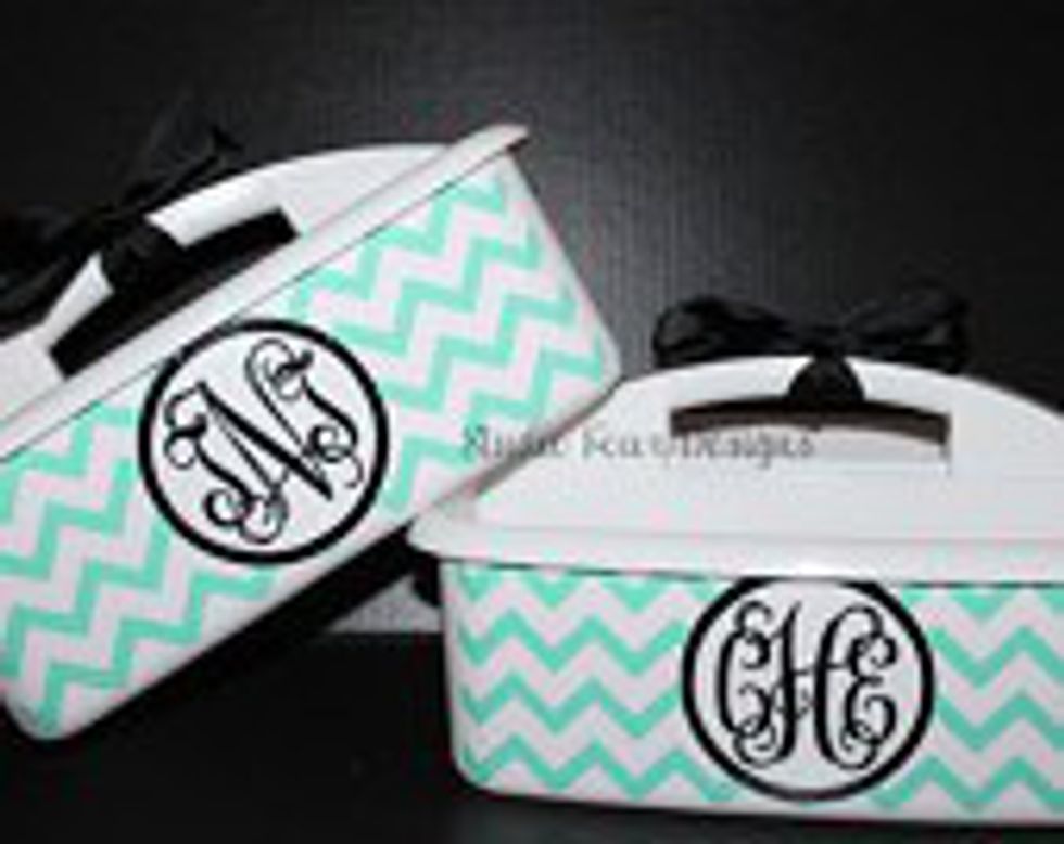 1. Monogrammed Chevron Shower Caddy from StudioFourDesigns: $24
