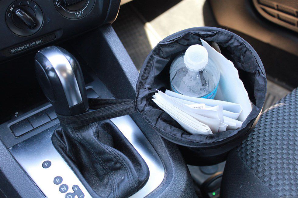 As commuters, we spend a lot of time in our cars. That fact becomes increasingly evident as the semesters progress. Minimize the clutter by keeping a trash can made for your car in the back seat! Another way to combat clutter is to keep a decorative bin in your floorboard to hold extra textbooks and school supplies.