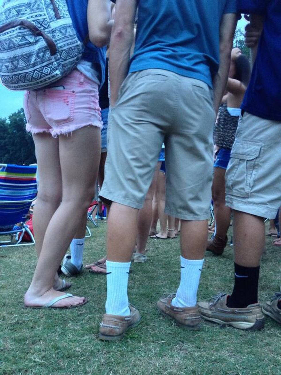 1. Khaki shorts with high socks boat shoes (or Nike sandals)