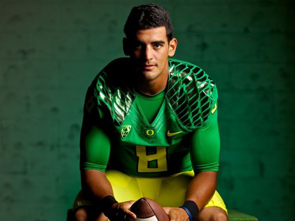 his cute smile and great arms. Mariota is leading the Ducks to a successful