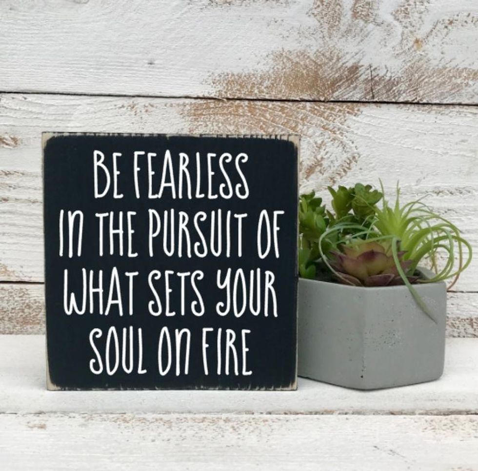 2. "Be fearless in pursuit of what sets your soul on fire" sign