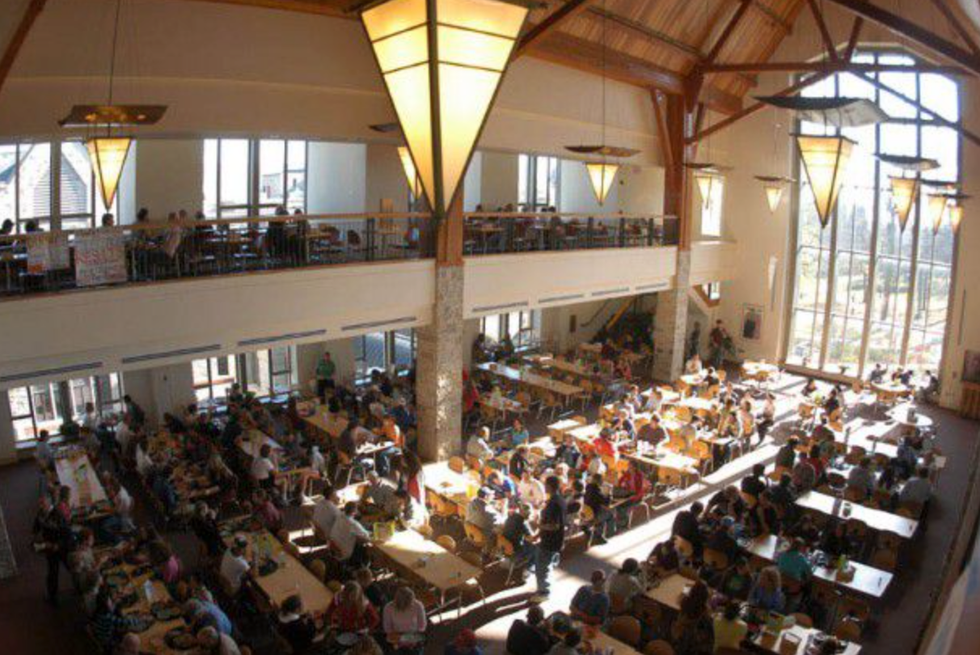 3. There is only one cafeteria on campus, which is fairly small and becomes ridiculously crowded at every weekday meal. All three food options (The Caf, the Pause, and the Cage) are in the same building. Meaning if you can't find some place to sit during lunch, or you want a quieter lunch, you should probably just get a bag lunch and go to the library or back to your room. (Bag lunch lines get really crowded and can definitely make you late for class). You also get sick of the food options really fast.