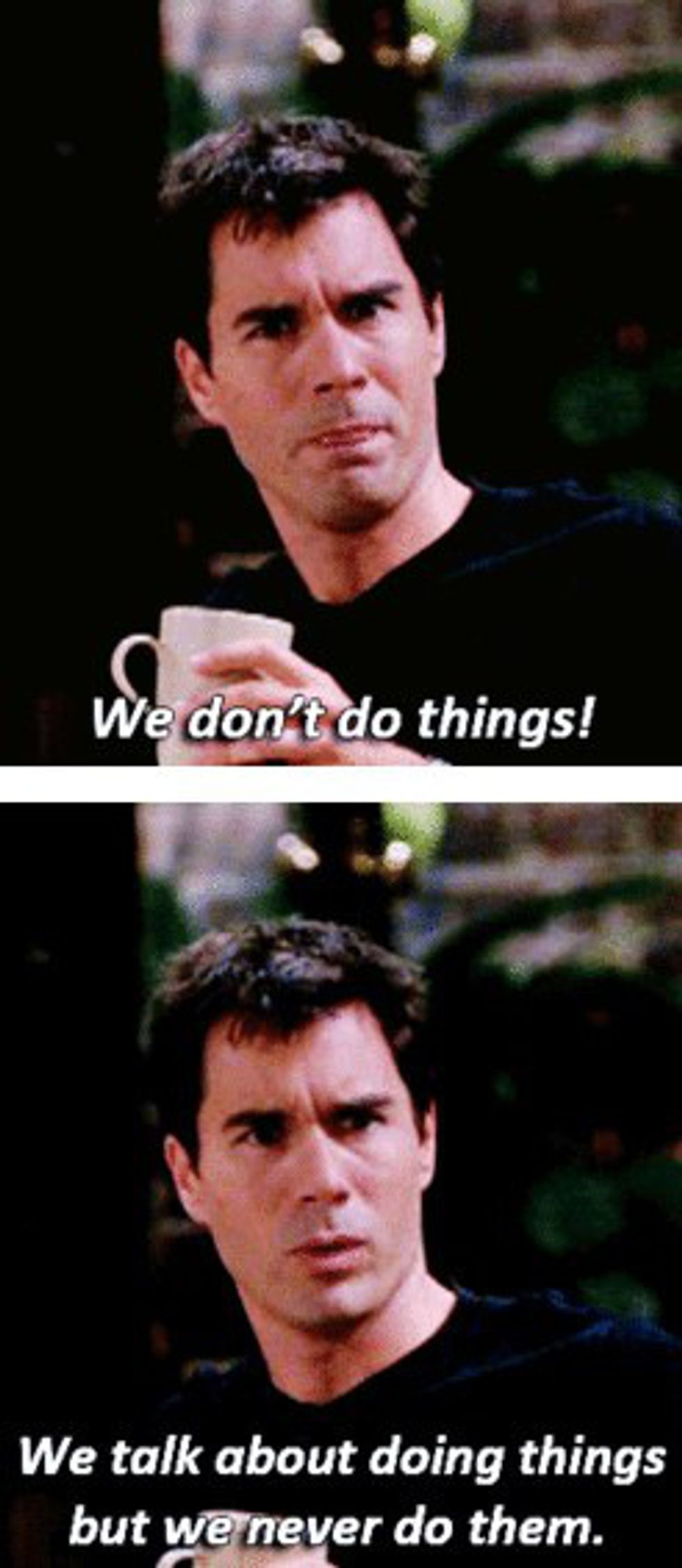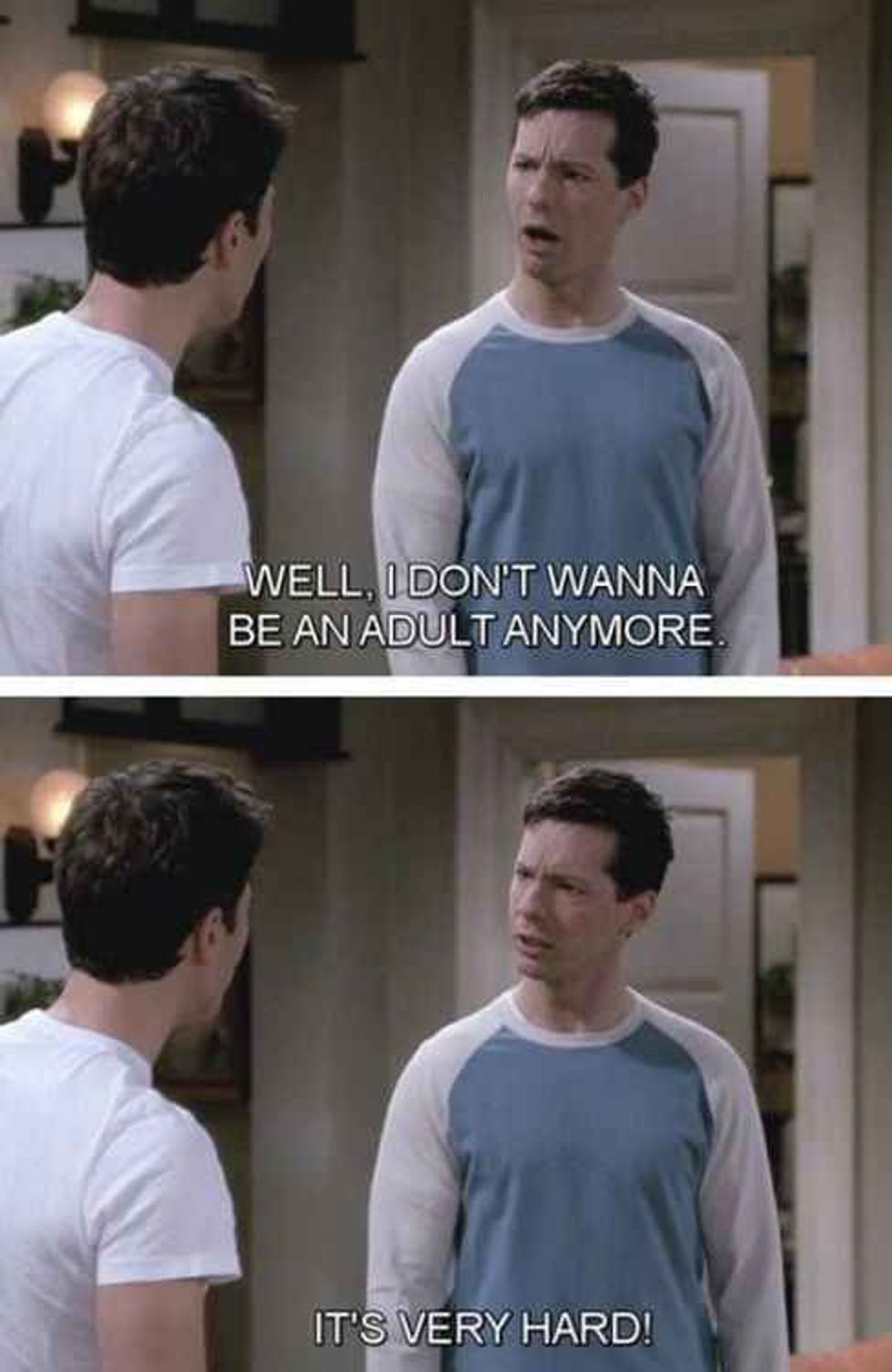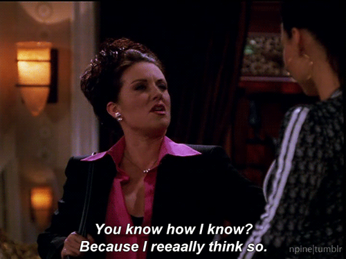 College is wonderful, but it can also be really difficult. Attempting to manage the various amounts of homework, studying for test and trying to leave time for food, friends and sleep can be exhausting! There are days when all I want to do is throw on some sweats, crawl into bed and watch countless hours of television without ever having to move. Well, if food is involved then maybe I'll get out of bed, but nothing else would make me move! One of my favorite shows to watch is "Will & Grace." Every single time I watch it, something reminds me of a typical week at college! So here's my list of things that happen in college brought to you by the amazing cast of "Will & Grace."