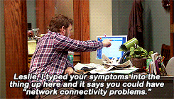 Nursing: "Leslie, I typed your symptoms into the thing up here and it says you could have network connectivity problems."