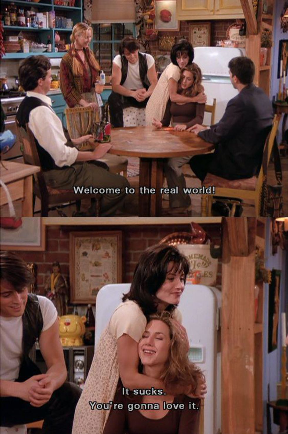 Ahh college. Moving out, living in the dorms, meeting new people. It’s such a wonderful experience and definitely gets you out of your comfort zone. After a few weeks have passed by, you start to develop a routine and sometimes you can feel overwhelmed or you just want to let loose. You aren’t alone though! The characters of “Friends” can relate to everything college students go through each semester: