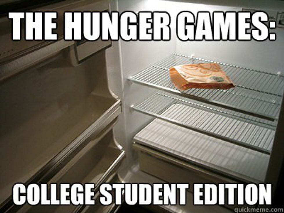 The food struggle is real for a college student, and often our refrigerators and cabinets are bare. If this happens you'll be forced to use your meal plans and eat in your school cafeteria...May the odds be ever in your favor.