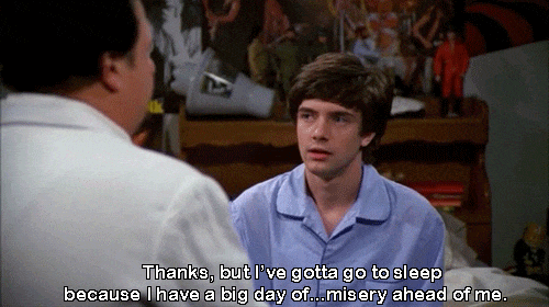 I have recently begun watching "That 70's Show" in my spare time. By "spare time," I mean that I watch it during the hours when I should be sleeping. If you are looking for a show that will take up a significant amount of your time, this one is for you. It is not only hilarious and occasionally thought-provoking, but it makes you wish that you were living in the '70s. The more time that I spend watching "That 70's Show," the more that I see how well it relates not only to me, but to all college students. Here are some moments in college that we have all experienced.