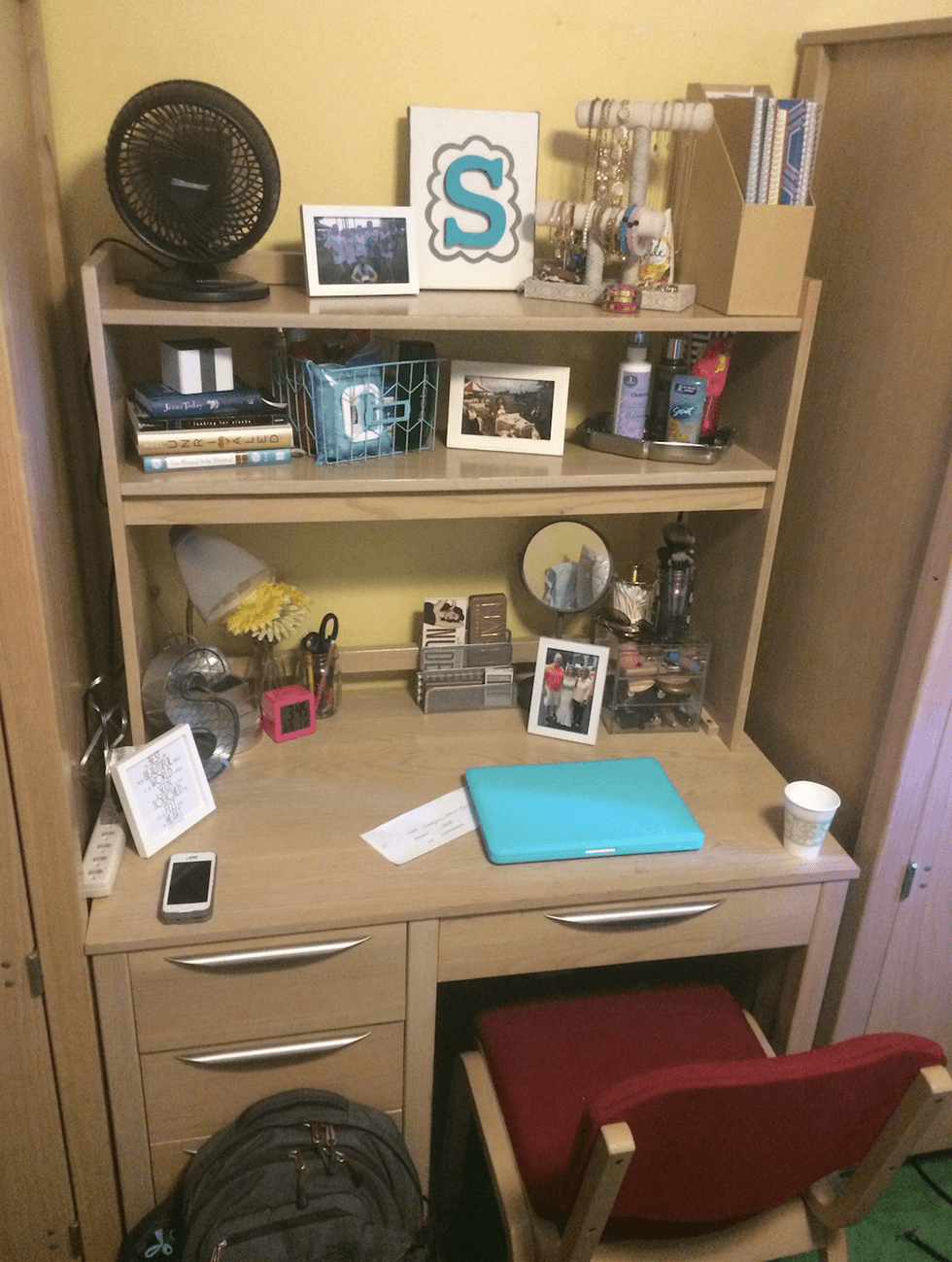 I made some sketches of where I was going to put everything in my dorm, and it helped so much because I was able to relax more. It also helped for when my parents wanted to help me put things away.