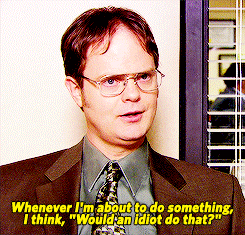 Dwight is always trying to impress Michael, acting as one of his most loyal "friends." On many accounts, he's tried to save Michael's reputation or even his life, by means of some faulty plan that never actually goes accordingly. Thus, Dwight is a blatant suck-up that wants credit, fame or just pure admiration from his boss to get a leg up to the top - a classic description of a college try-hard.
