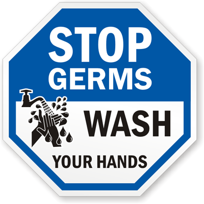 If you're really absolutely terrified about the germs everywhere, use a wet wipe to open doors and wipe countertops.