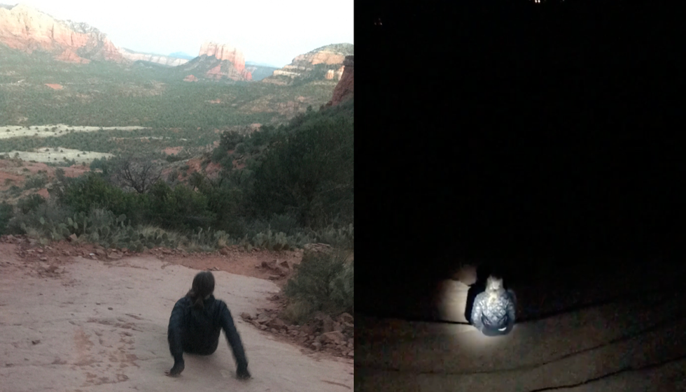 To be fair, there are many perks. Stunning views, golden hour, emotional climax, whatever. Not trying to hold you back, but if you choose to make this mistake... I recommend sprinting down the mountain as soon as the light begins to dim. If not, you will be stuck in the dark, navigating your way down rocks, cornered in by barbed wire fences, regretting every choice you’ve ever made.