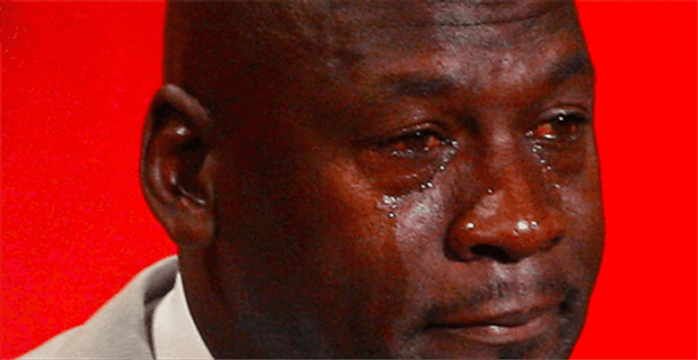At his Basketball Hall of Fame speech in 2009, Michael Jordan couldn't hold back tears as he reminisced on perhaps the greatest career in NBA history. Being inducted into the Hall of Fame is obviously an accomplishment, but years later Jordan's facial expression became the epitome of sadness. Crying Jordan's face is typically used for sports-related upsets, but it perfectly emulates the grief of college struggles.