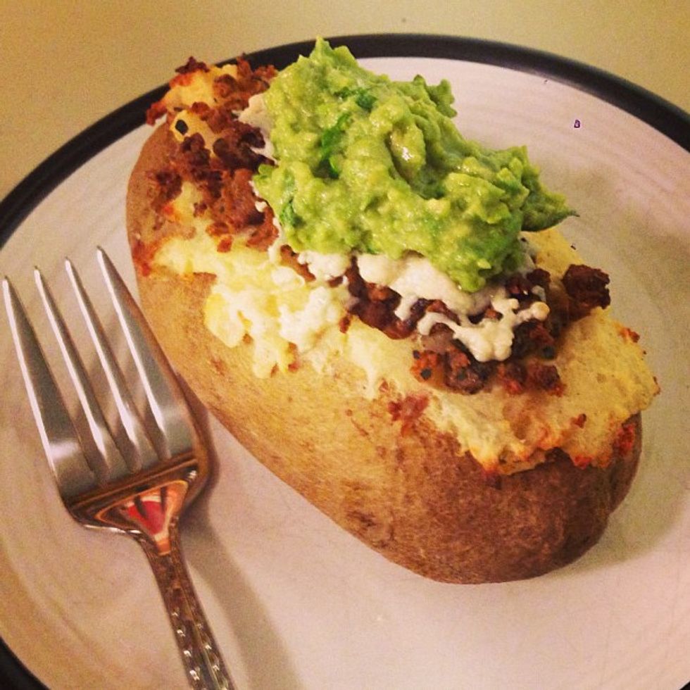Poke them with a fork a few times and potatoes cook in a few minutes in a microwave. To turn it into a meal, top with leftover chicken, a can of black beans and salsa, broccoli and shredded cheese ... let your imagination run wild with toppings.
