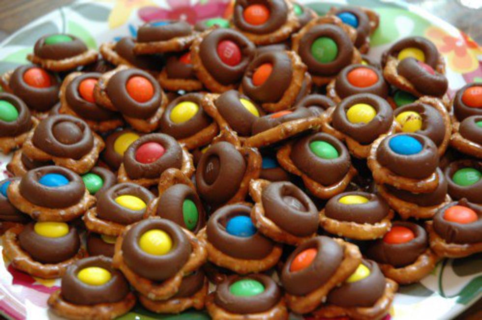 I make these M&M pretzel treats ever year and they are always a hit. Here is the recipe: