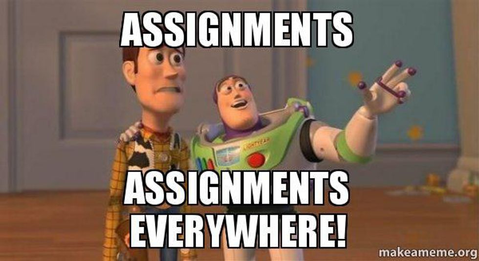 When you get every class syllabus that week you are presented with all the work you will have to do for the rest of the semester! You feel overwhelming panic about every essay, paper, problem, quiz, oral report, and exam that you know is in the near future.