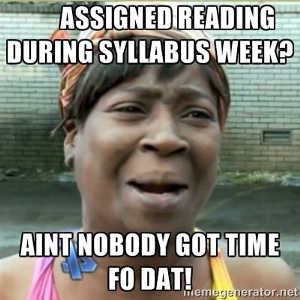 Syllabus week is incredibly boring and usually feels like a waste of your time. You drag yourself out of bed and try to look good because it’s the beginning of the semester, just for the professor to read off to you what is already written on the syllabus they just gave you.