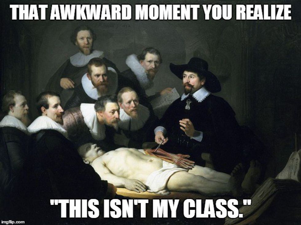 When you realize you have no friends in your class. And you feel that dread and panic when your professor vaguely mentions group work.