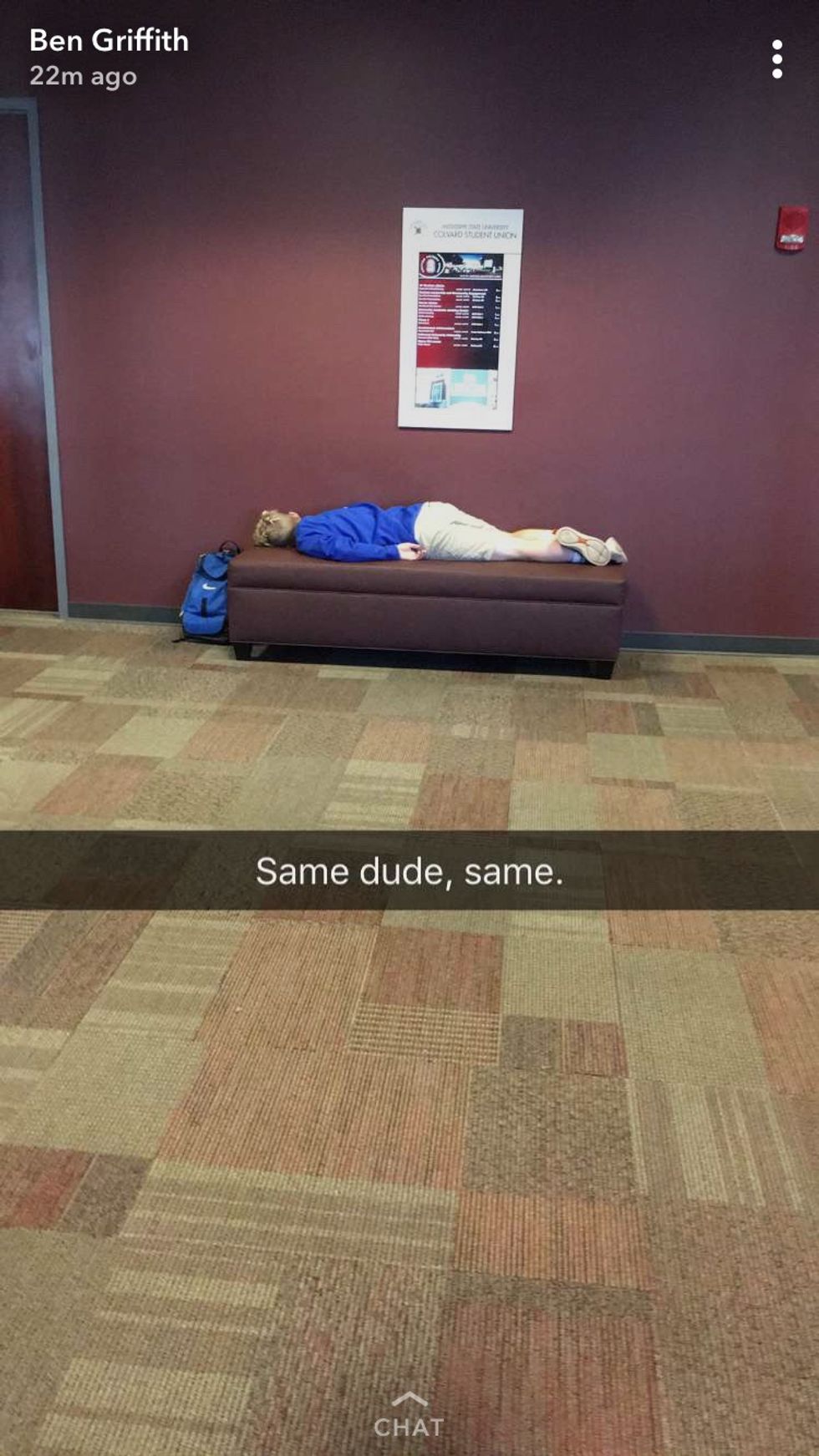 I like to compare this to when we were kids and we would just fall asleep (literally fall) wherever and that's exactly what college is. Sometimes you just can't make it.