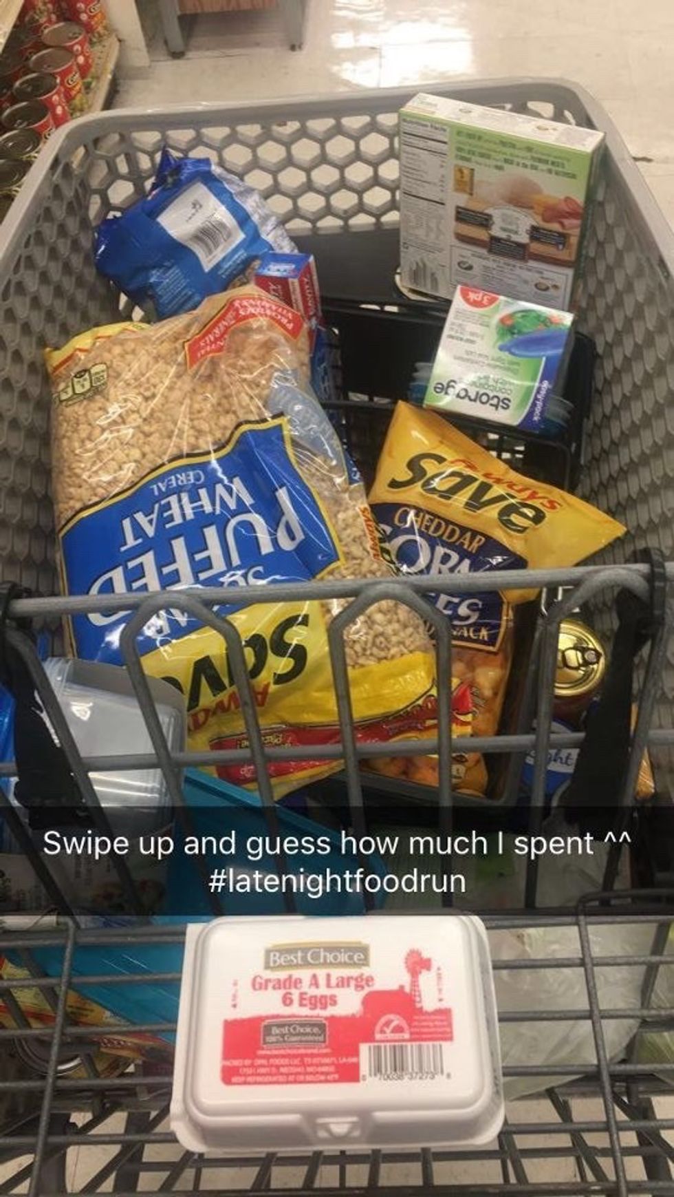 At some point, someone is going to forget about dinner and your whole friend group is going to end up at Cook Out at 2 am or maybe even the grocery store because everyone needs groceries at random times during the night.