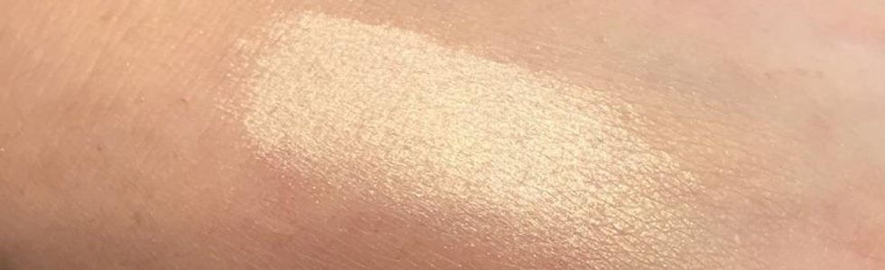 Please excuse the lighting for second swatch, it was late when I took that! The first swatch is featuring the Body Shop shadow which I think works great as a highlighter with its subtle shimmer and the price ($10). The Becca highlighter ($38) is at the bottom and as you can see it is chunkier and in my experience appears more natural rather than glam and you get a lot more product than you would for the Body Shop's (considering that product is meant to be an eyeshadow).