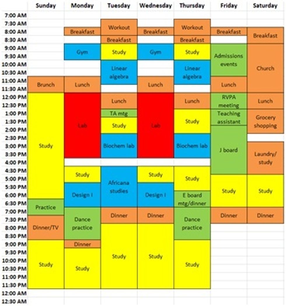 The first couple of days during sylly week, undergrads are getting their lives together. Classes are about to start and students are starting to memorize their routes on campus. You have two classes on Monday, a night class on Tuesday, 8 AM Wednesday (fml), same two classes on Thursday, off Friday (turn up). You also may be coming back to school already in a club, org, athletic team, or on-campus job. You gotta mix your academics with your extracurriculars and get that routine goin'! It's stressful at first, but once that routine is formed its smooth as heck. The best part about having a routine as an undergrad was that you got to change it whenever you wanted to. If a class was canceled or your club meeting was postponed, more free time for you (and when I mean free time I mean nap time). There is a select portion of you ex undergrads that loved scheduling with color coordinated post-its or something similar to the picture above. Whiteboards were your friends and reminders on your phone helped a bunch. I bet many of you made sure you got a Dunkin' or Starbucks trip added to your daily routine.