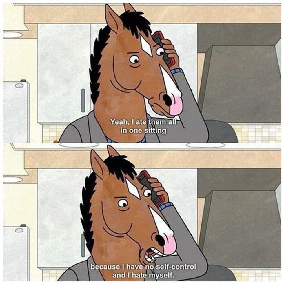 As you can see, Bojack is the poster-horse for millennial existential crises, which if you're a college student, you know far too well. As a matter of fact, if you've never watched this show, I suggest blowing off your exams to binge it all in a few days -- like I did. Happy procrastinating!
