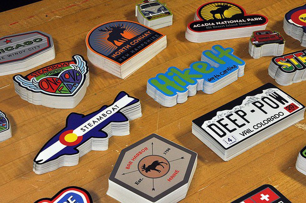 They go everywhere...laptop, Nalgenes, cars, you name it. Sites like RedBubble and Society6 will find you some of the best.