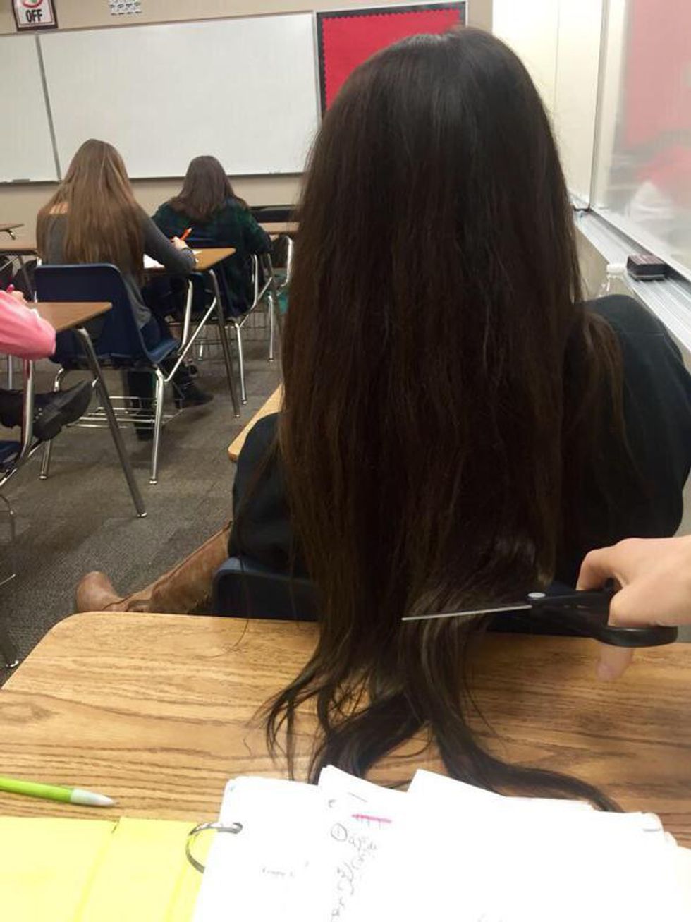 I don’t want strands of hair falling on my desk. I don’t want your long hair draping over my notes. Go sit in front of the guy eating Chick-fil-A, please.
