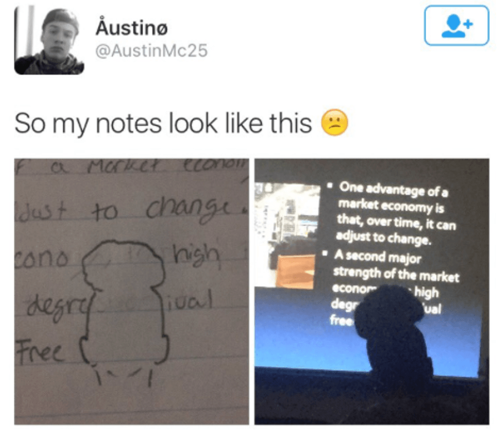 Start a group chat. Let people know what they missed in class. Tell people what the homework is. Study together. College can be beautiful sometimes, you know?
