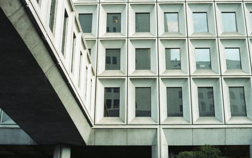 Of course, I'm shooting the architecture around the area. One thing I love is getting different tones in the same shots, and I loved the cool and warm tones from different reflective sections of the side of this building.