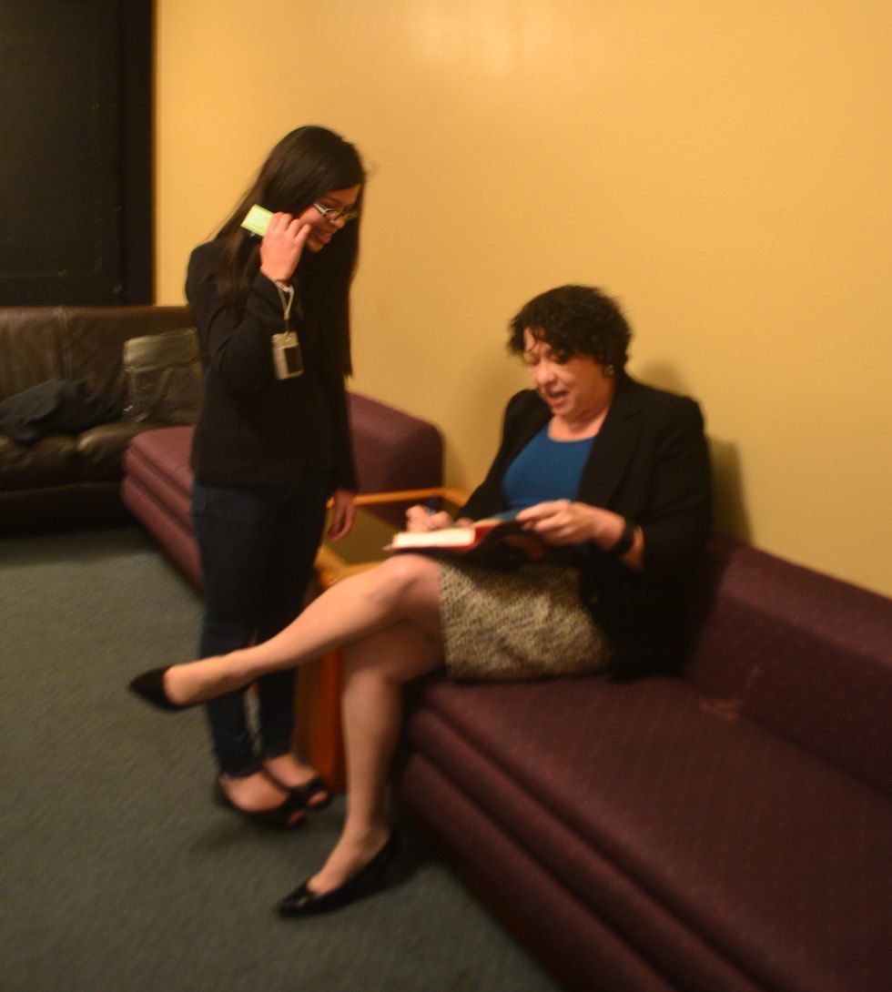 When I see her, I have to take a deep breath to process the fact that Sonia freakin' Sotomayor is in front of me. She greets us warmly. I am put on the spot when she remarks that she has been told that there was a freshman in the group. I raise my hand and she says something I don’t even remember. I was so nervous that I dropped my eos lip balm, and she picks it up and hands it to me.