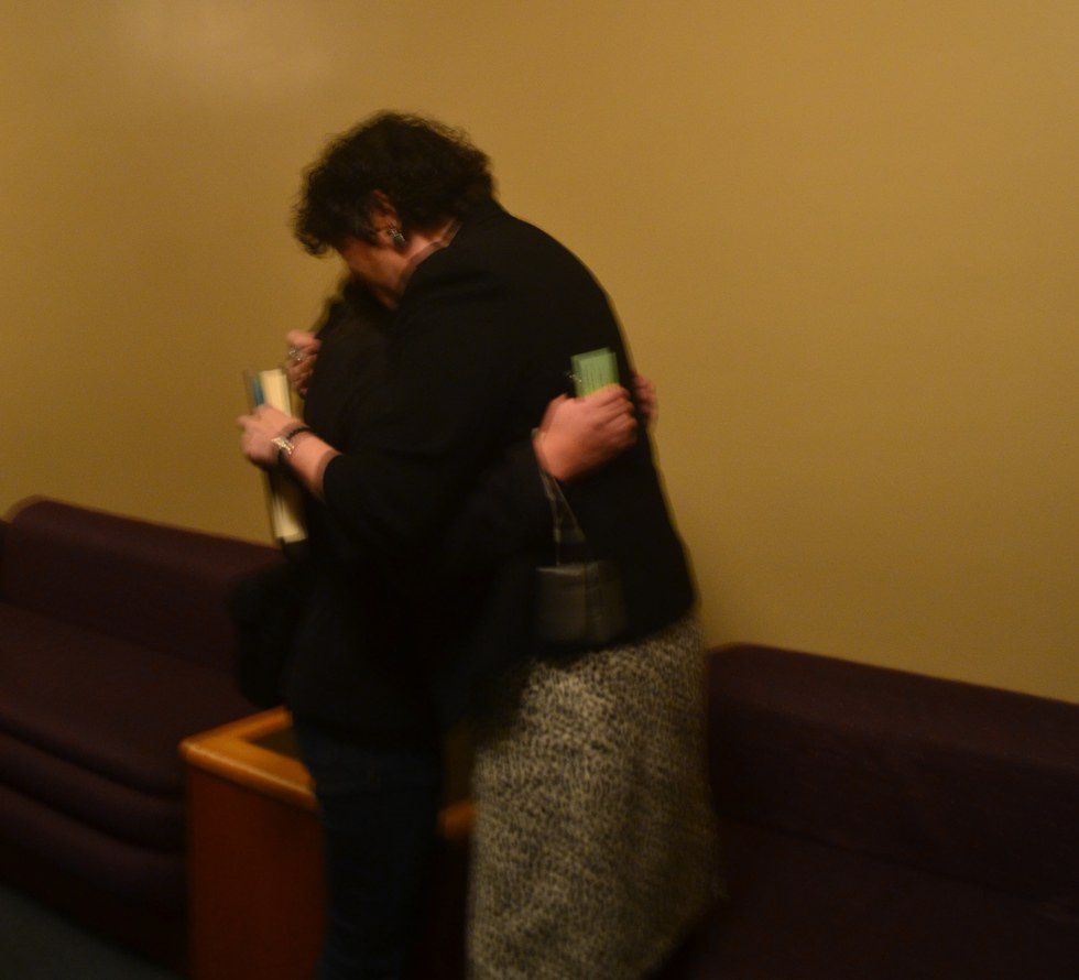I completely lose it and start crying. I am so mad at myself for crying in front of all these people, especially her. She stands up and gives me a hug. The room is silent. The room is silent.
