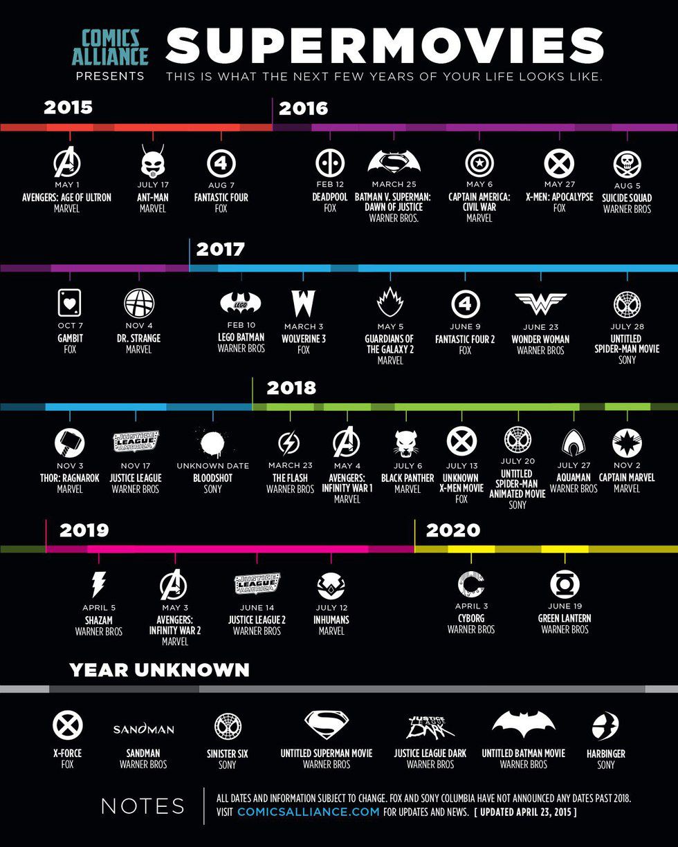 In the next five years, both Marvel and DC plan on releasing over thirty different movies based on their comics. That means every other month, we are going to have a new comic book movie.