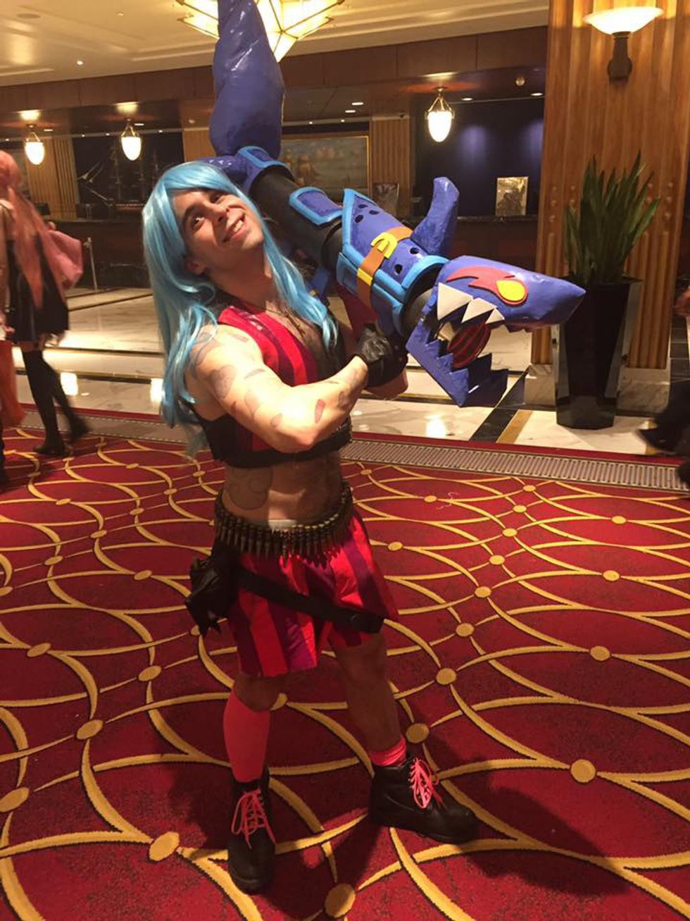 Even stuffed animals and photographers make appearances. During a League of Legends photoshoot when Fizz (a character) was called, and nobody cosplayed as him, so someone threw their stuffed animal they bought up to fill the position. And this kind photographer helped sit him up to be picture ready.