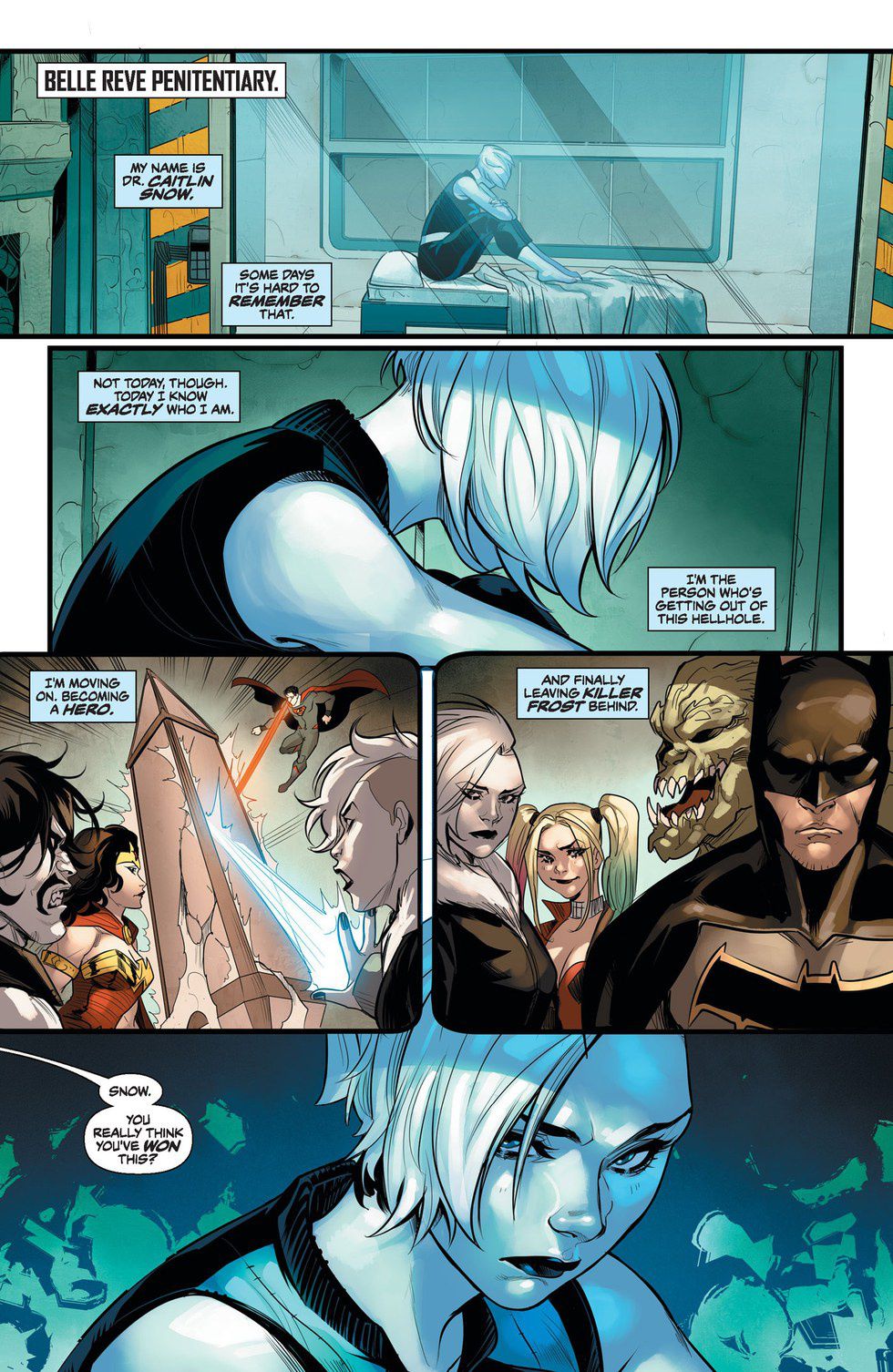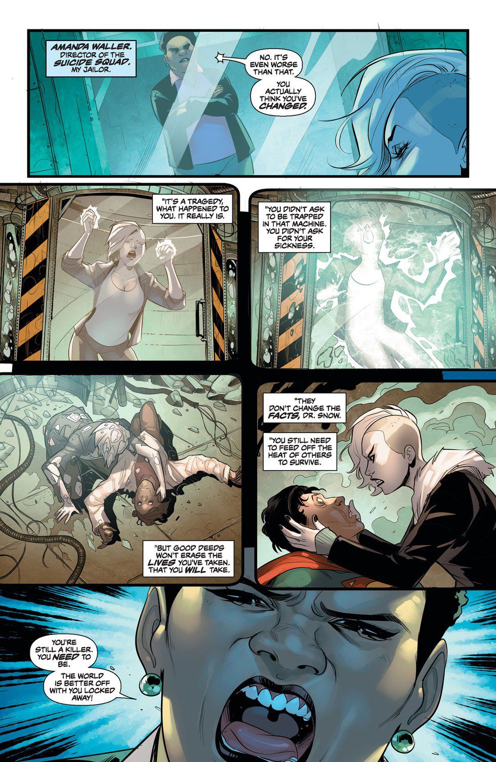 Justice League of America Rebirth: Killer Frost, is about, *drum roll please* KILLER FROST! Shocking, right? So anyway, following the events of Justice League vs. Suicide Squad (which you should read, it's good), Caitlin has been relocated back to Belle Reve. She is awaiting to be released to the Justice League so she can begin her training toward becoming a hero, however, Amanda Waller "loses" her paperwork, so she is stuck until the paperwork gets resubmitted and approved. This is, of course, all part of a test orchastrated by Waller, who doesn't believe Caitlin can change. She's killed too much and she needs to "feed" to survive, Waller is banking of Caitlin slipping up and killing someone so that she can keep her under her control on the Suicide Squad. So, while depriving Caitlin of a means of a heat source, Waller sets up several different confrontations to push her into a corner, to try and torture her in to using her powers to kill.