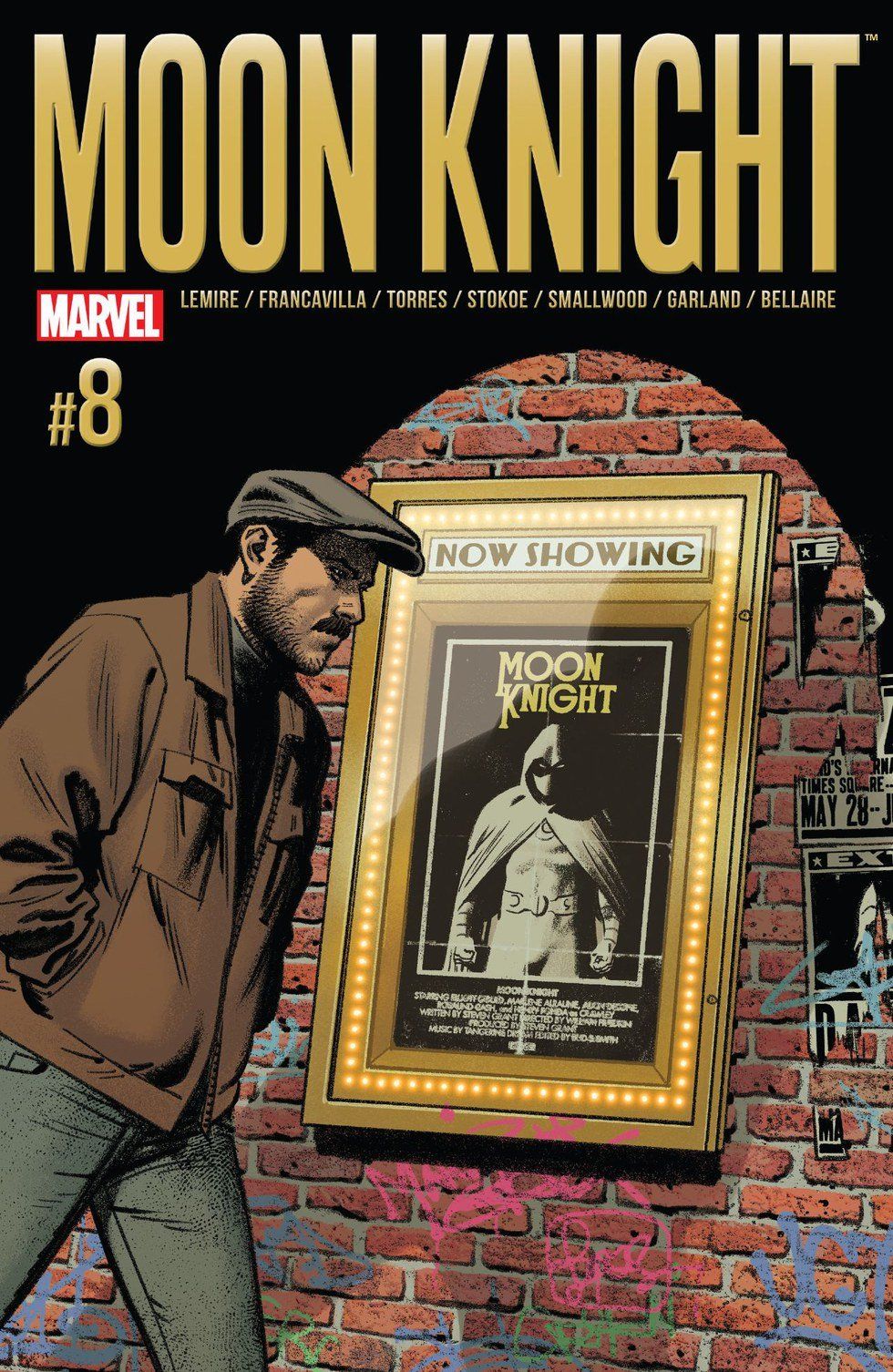 Still, surprising and often fun as it can be to watch Lemire play, there is something to be said for how exhausting it can be. We are 8-issues into this series and it's still not really clear what is and isn't real. The plot has always centered around both the character's and our attempts to understand who Moon Knight is and we are no closer to discovering the truth than we were at the beginning. As Crawley, Moon Knight's friend says in this issue, "I'd hoped you'd be further along by now." As the character's mind devolves as the issue goes on–sometimes switching from one panel to the next–it's difficult not to feel that same fatigue.