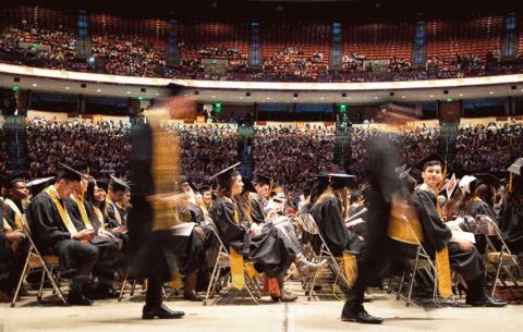 The Masters graduates are sitting but we're standing...I guess I'll stand to be courteous.