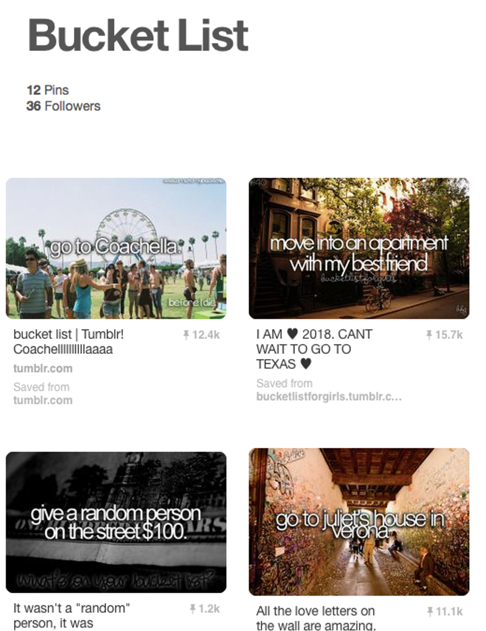 Bucket List boards are filled with these.