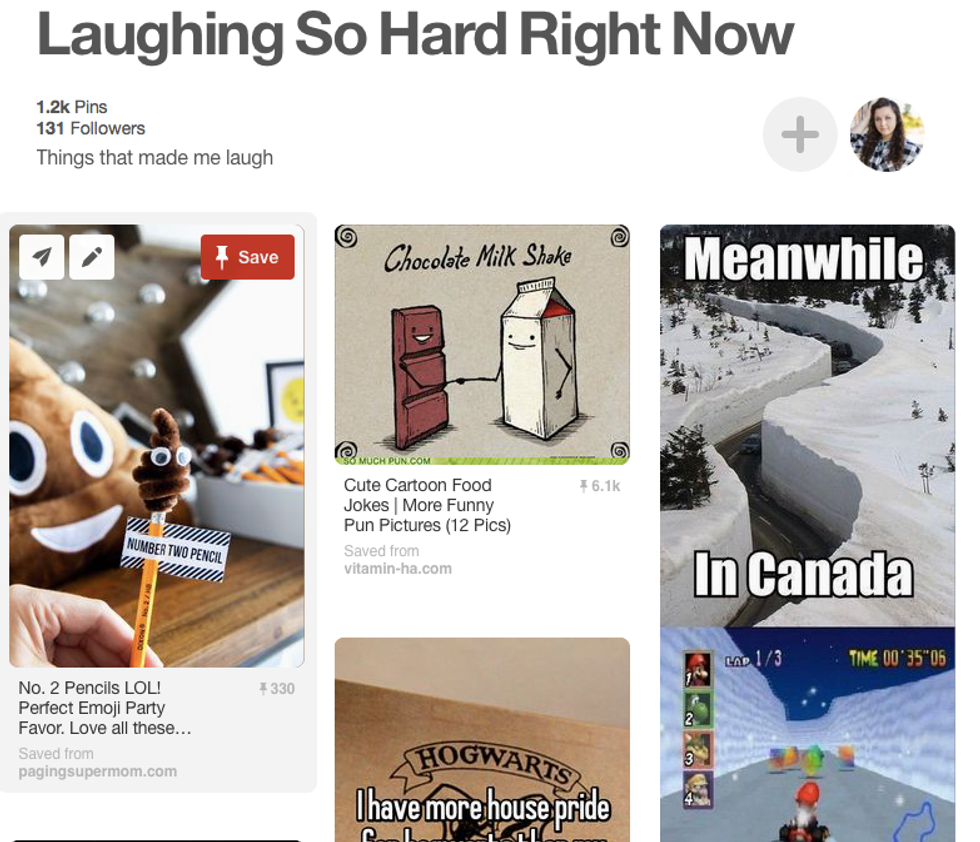 Usually filled with memes and puns you can find all types of different humor boards on Pinterest