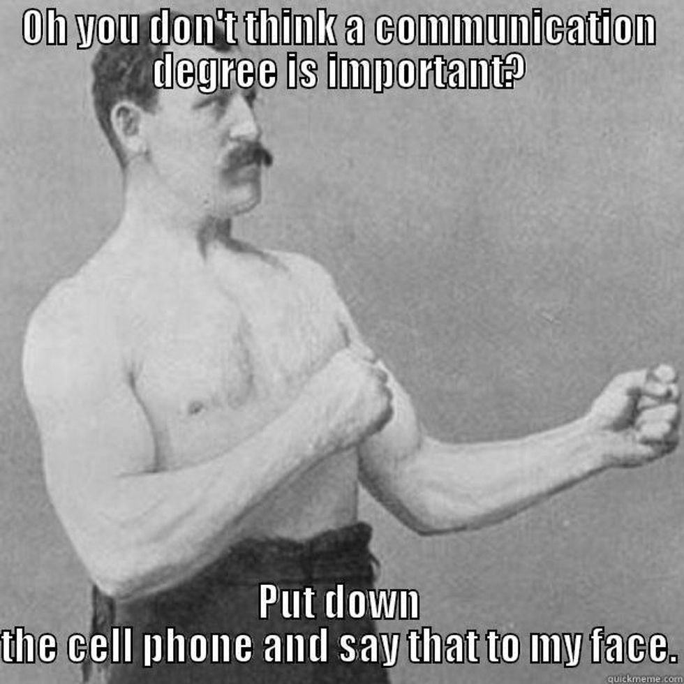 If there is one thing I hear above all else, it is that communications as a major is just too easy to be respectable. While I truly believe that there are plenty of people out there who truly don't have the skill set to do what I or other communications majors do, I don't believe the major is especially hard. It is time consuming and stressful though. To be a communications major this day and age means being involved in student media or other communications related organizations. Student media is something that often goes highly unnoticed but also takes dozens of hours every week to make productive and respectable. For example, if you are an editor for your school newspaper, you must assign that week's stories and make sure all the stories are covered. The stories that aren't covered—sometimes this can be several—you have to write yourself. Writing an article includes scheduling and conducting interviews on top of simply writing the article. An editor then has to make sure all stories are edited and ready to be put in a layout. The editor must design this layout, make sure everything fits and looks beautiful and be ready to print before deadline. Usually this all takes place in a span of a week, sometimes less.