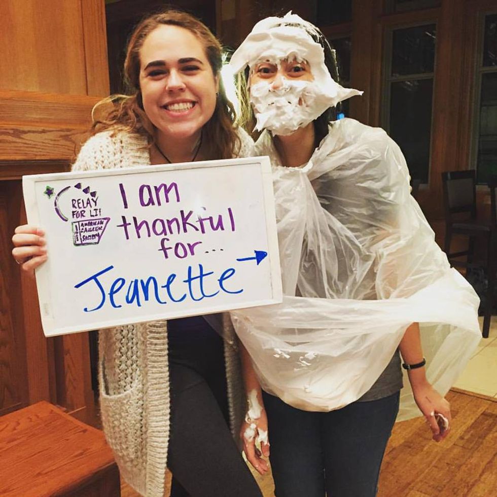 "Here is a picture of me after getting pied in the face to fundraise for Relay For Life."