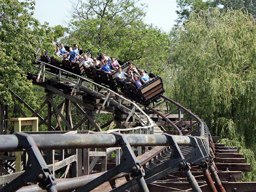 So this coaster is wooden, old and slow. It may have been built in 1964, and makes some questionable creaking noises, but it’s still worth the hype because the last 5 seconds of hills at the end will have most riders flying out of their seats.