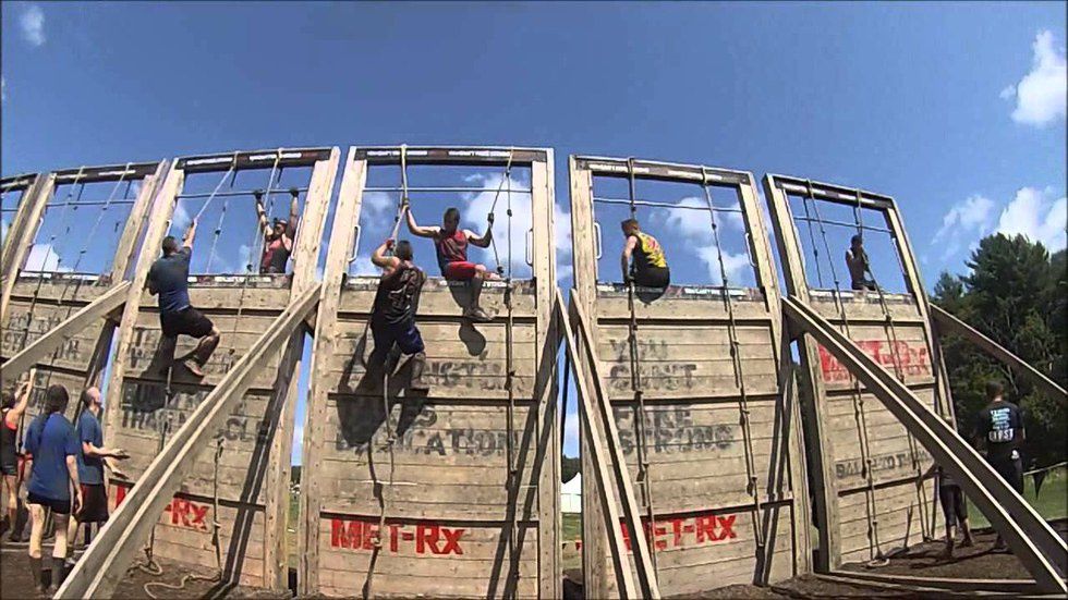 On Saturday, August 27th, I participated in my first ever Tough Mudder. It spanned 10.3 miles in an ATV park, which means it was quite hilly in some parts, but flatter in others. There were 20 obstacles within the race to be overcome, many of which required help from your teammates and other participants, affectionately referred to as Mudders. My team consisted of my dad, a good friend of his, that friend's daughter, her boyfriend, and a few guys from my dad's buddy's office. I hadn't met the guys from the office before, but I was very comfortable with everyone else, so I knew I would be in good hands. Throughout the race you not only rely on your team to help you, but you get help from Mudders that you've never met before and you may never see again. Everyone is there to help you get through. You also need to be able to rely on yourself and your mental grit to push through the roughest times.